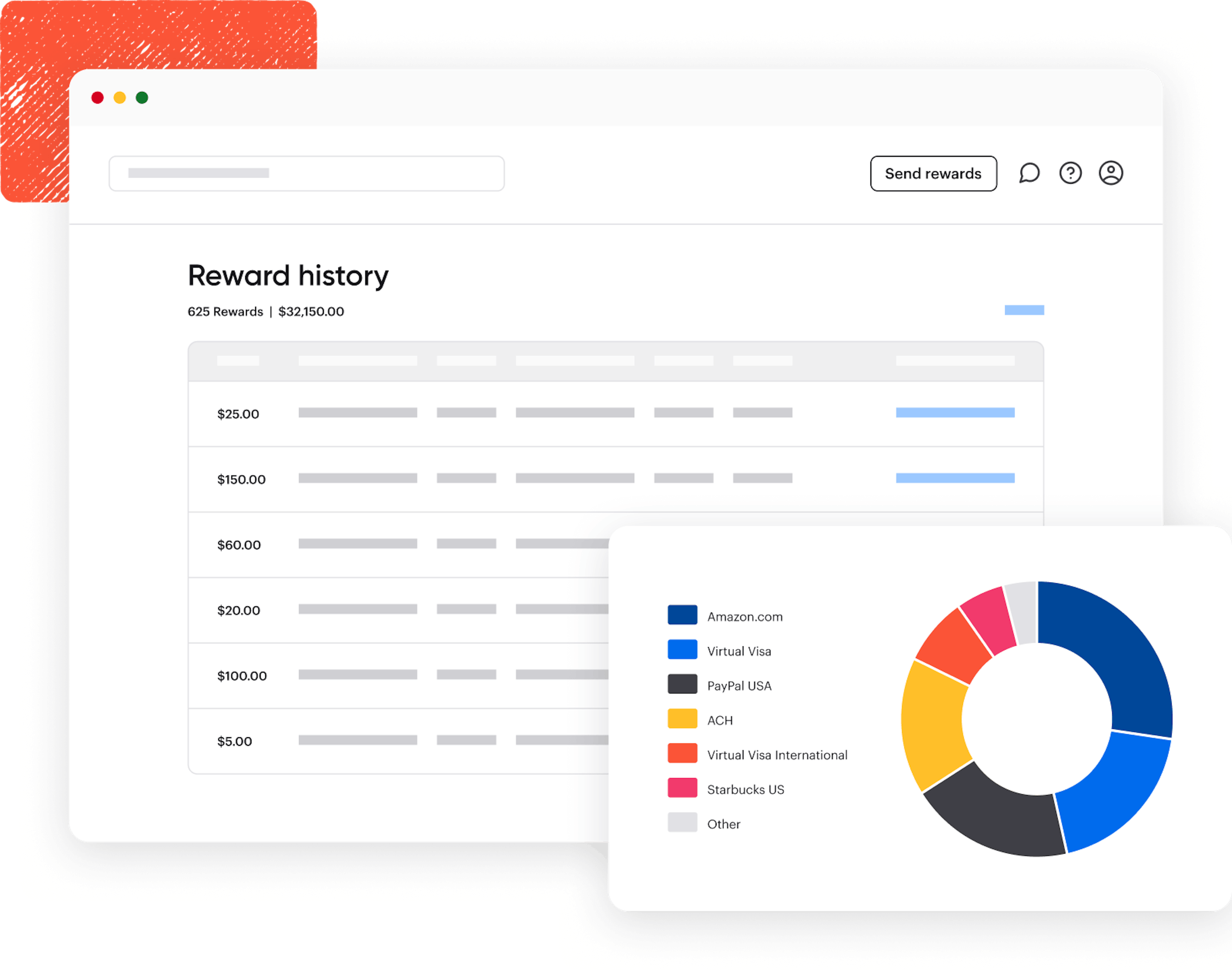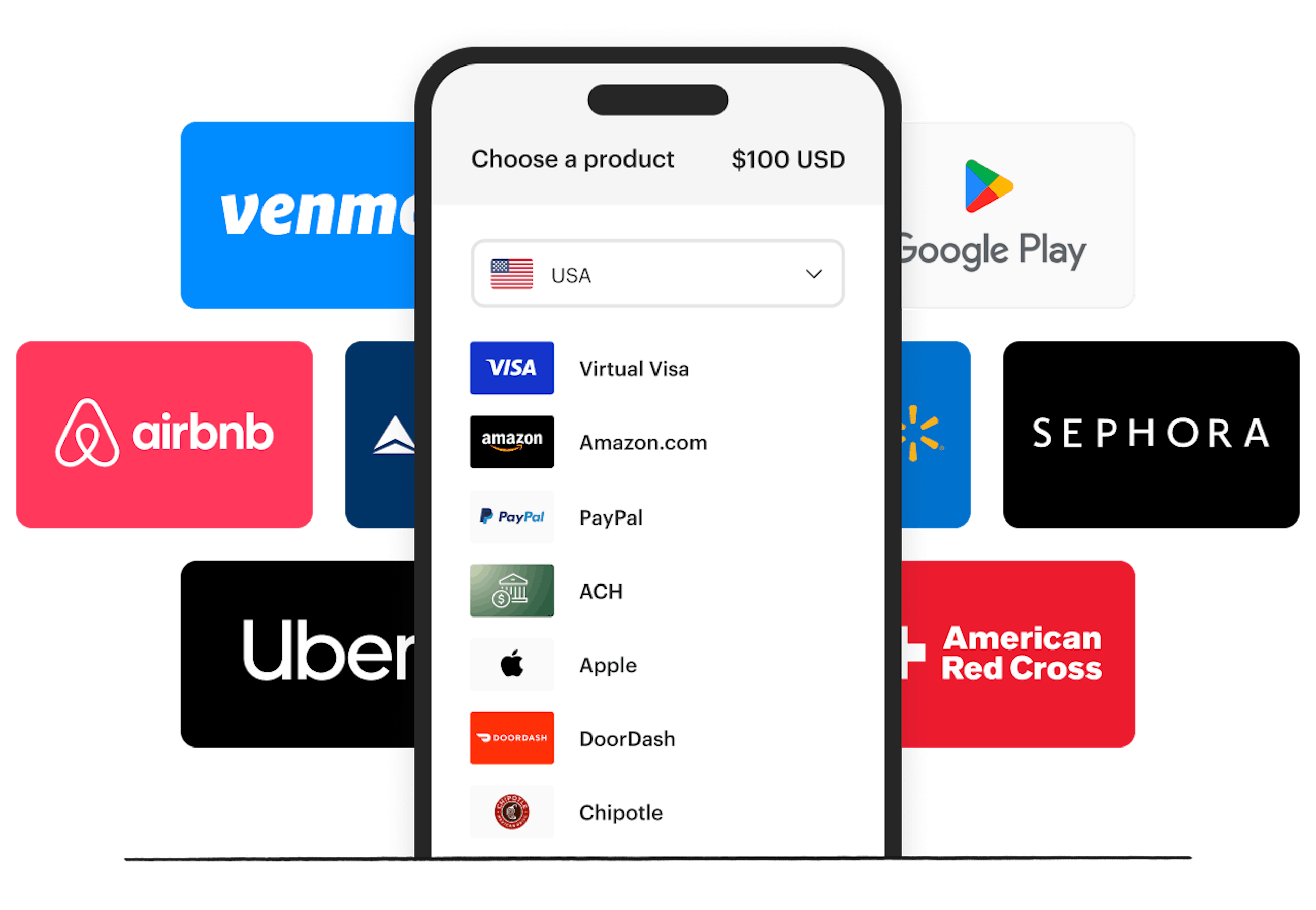 Select options from our catalog of ACH payouts, prepaid cards, and 2,100+ gift cards.